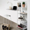 דגם ה־A-Stool עשוי מתכת בציפוי אבקה (Powder-Coated) עם חריץ נשיאה בחלק העליון ורגליות סיליקון למניעת החלקה.