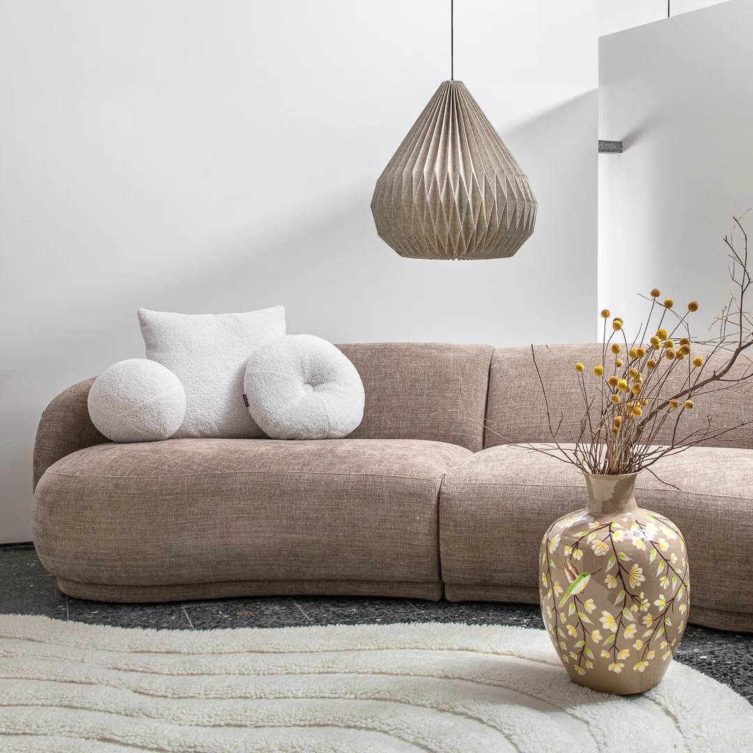 השלימו את חלל המגורים שלכם, המשלבת אלגנטיות ורכות בעיצוב מעוגל ומזמין.