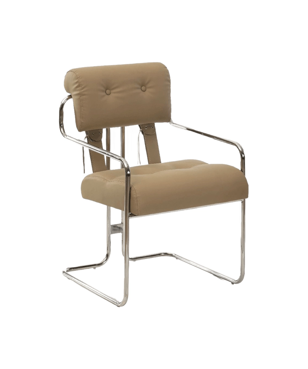 כורסא מעוצבת בעלת מראה אלגנטי ונקי, המשלבת שלדת מתכת ניקל.