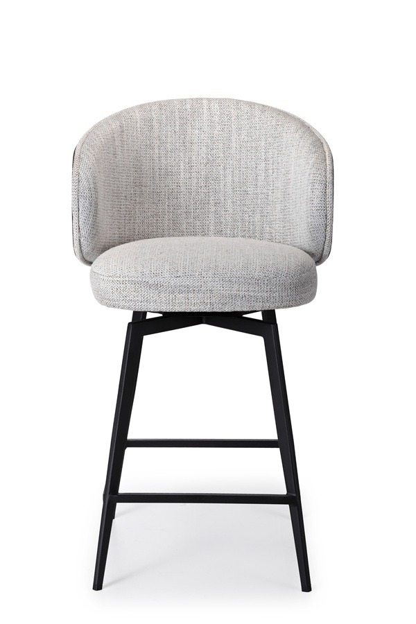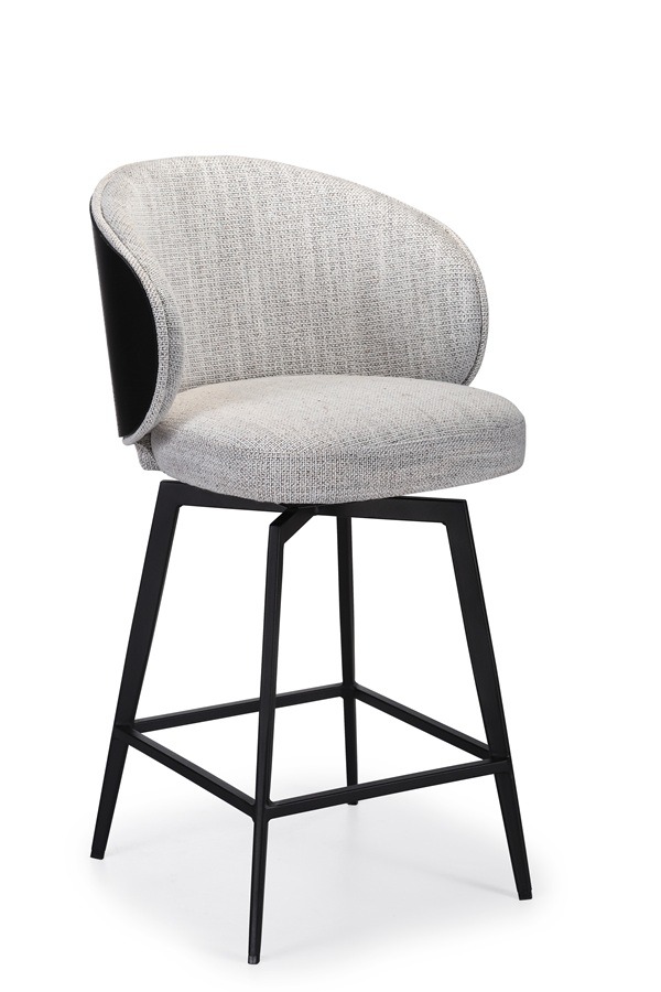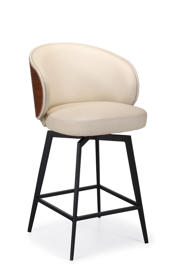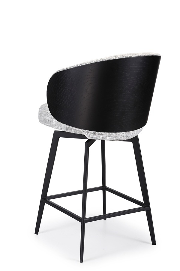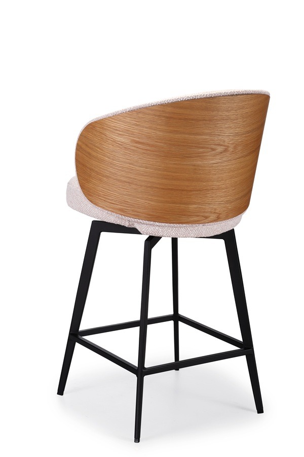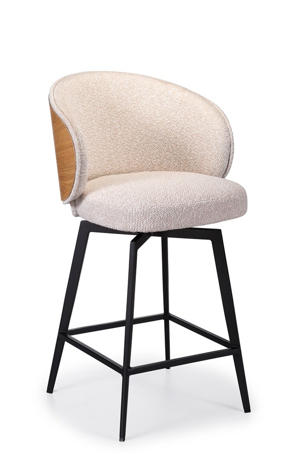 כיסא בר בעיצוב מוקפד ואלגנטי, המשלב נוחות מתקדמת עם נוכחות עיצובית חזקה. הכיסא כולל גב פורניר מעוגל, מושב מרופד ורגלי מתכת יציבות.