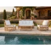 פינת ישיבה ייחודית עשויה מעץ טיק, בעיצוב מינימליסטי ונקי שמכניס חמימות ורוגע לכל מרפסת או גינה.