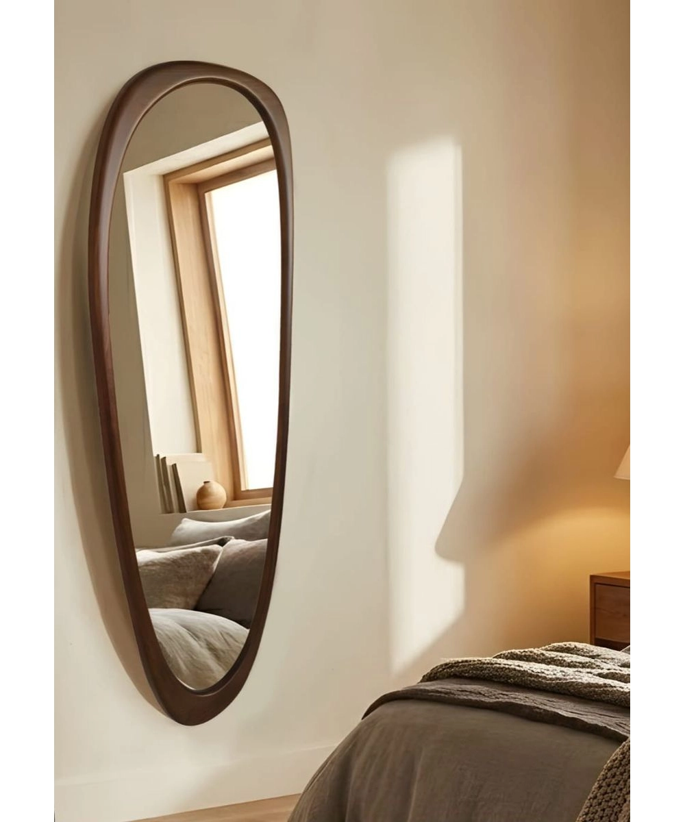 מראת גוף מדויקת, מרשימה ואלגנטית, המגיעה בגוון עץ אגוז.