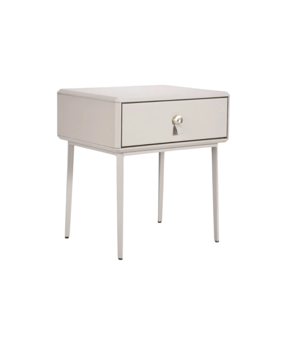שידת צד דמוי עור, קלאסית ומרשימה בעלת מגירה נפתחת היוצרת חלל נקי ומסודר.